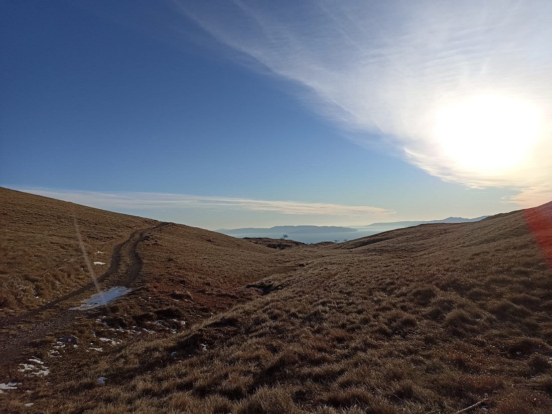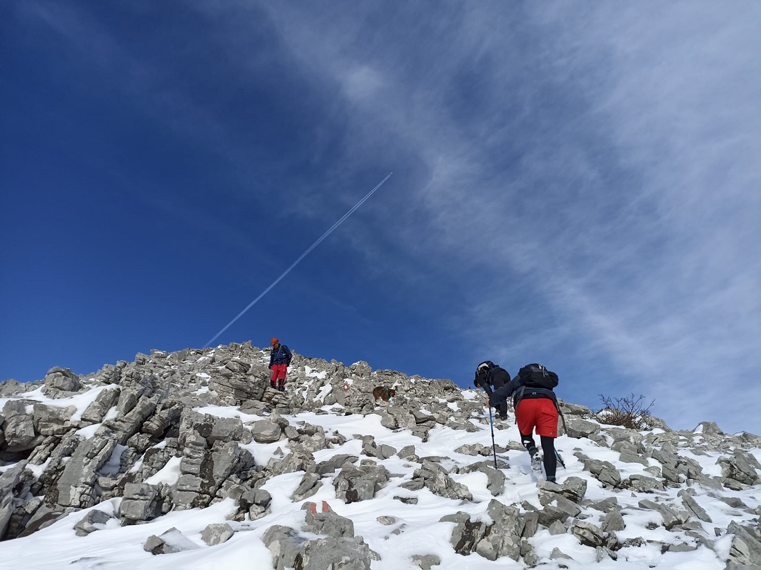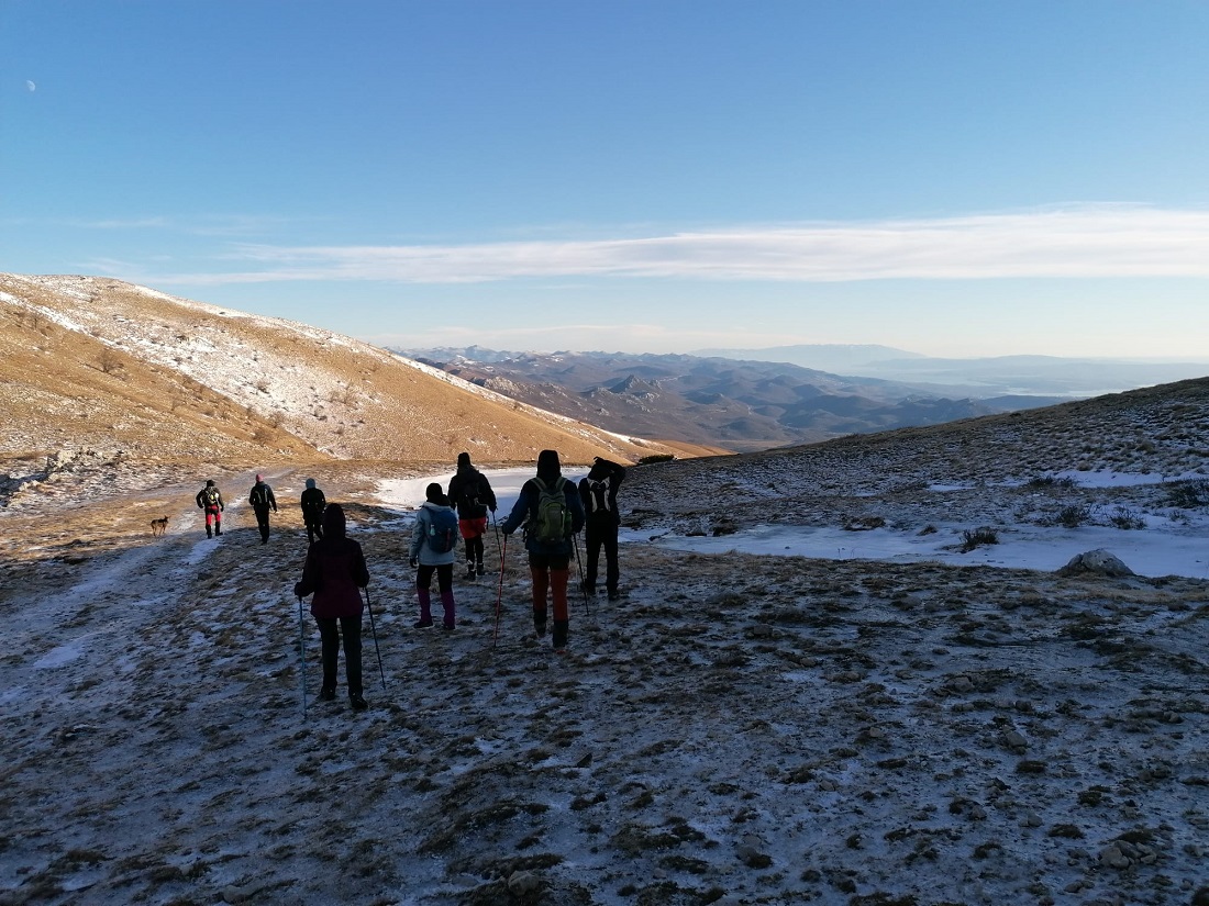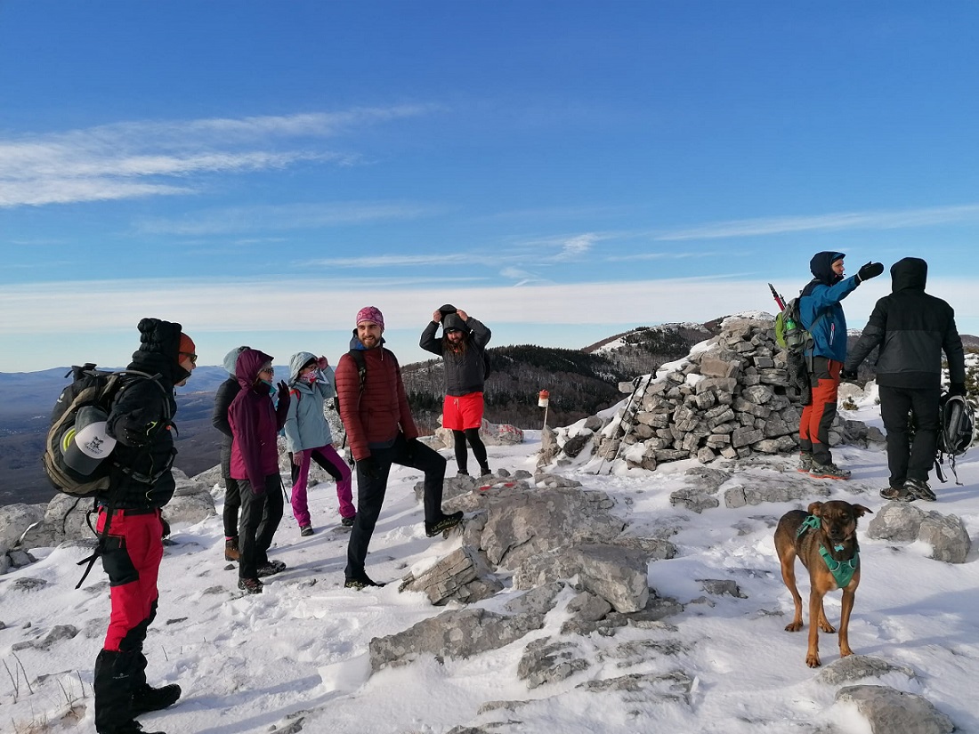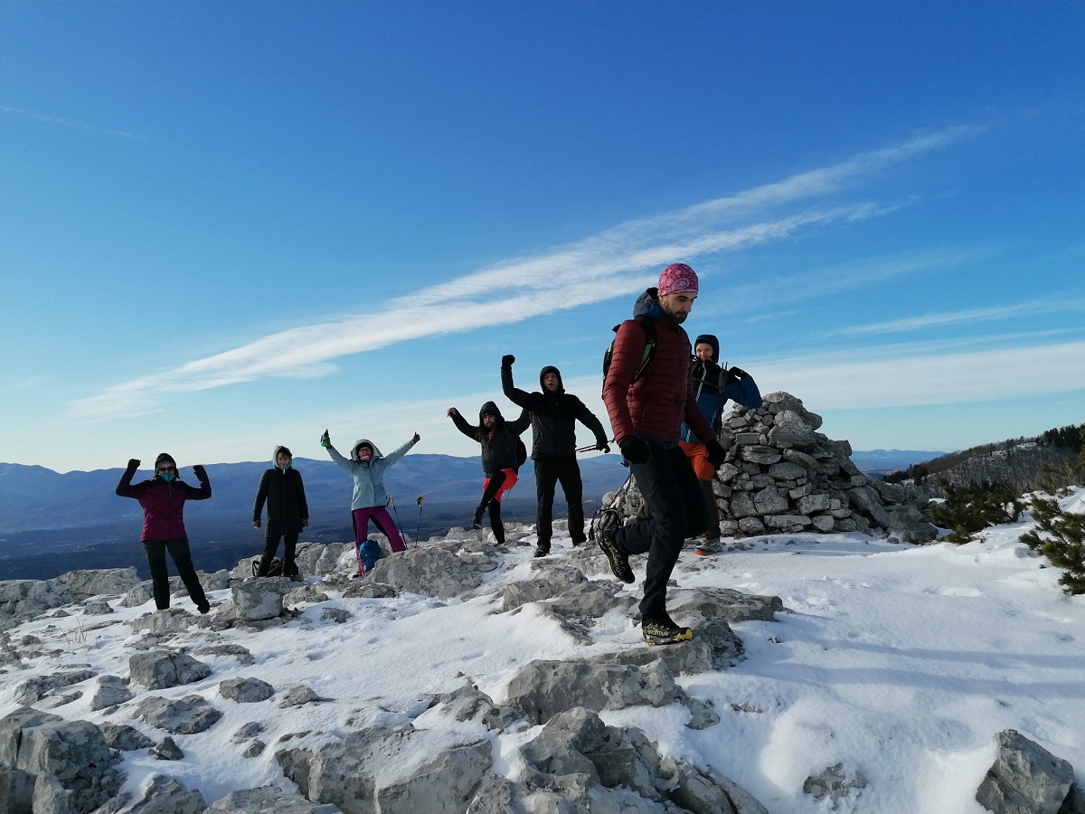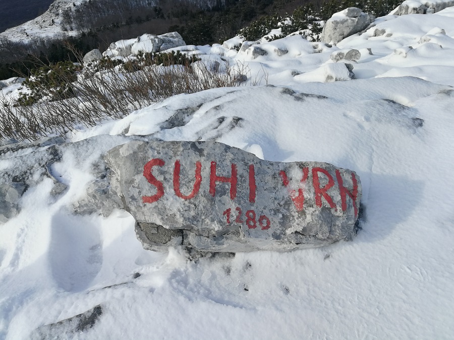 Under influence of our mountain friend, we decide we will not go to Obruč. It is an hour and a half hike and the terrain is not very friendly, not when covered with snow. We leave Obruč for our spring return to Hahlići. Still, we make a weird decision of going to Suhi vrh (and thinking about Fratar at that time) which is kinda tricky even when the terrain is dry. To reach Suhi vrh, you gotta climb a little, get on all fours but nothing that would be too hard. Suhi vrh is closer than Obruč so we decided to go there. I try not to say this infamous „I told you so“, but we started our ascend a little bit too late, at least while considering a short winter day.