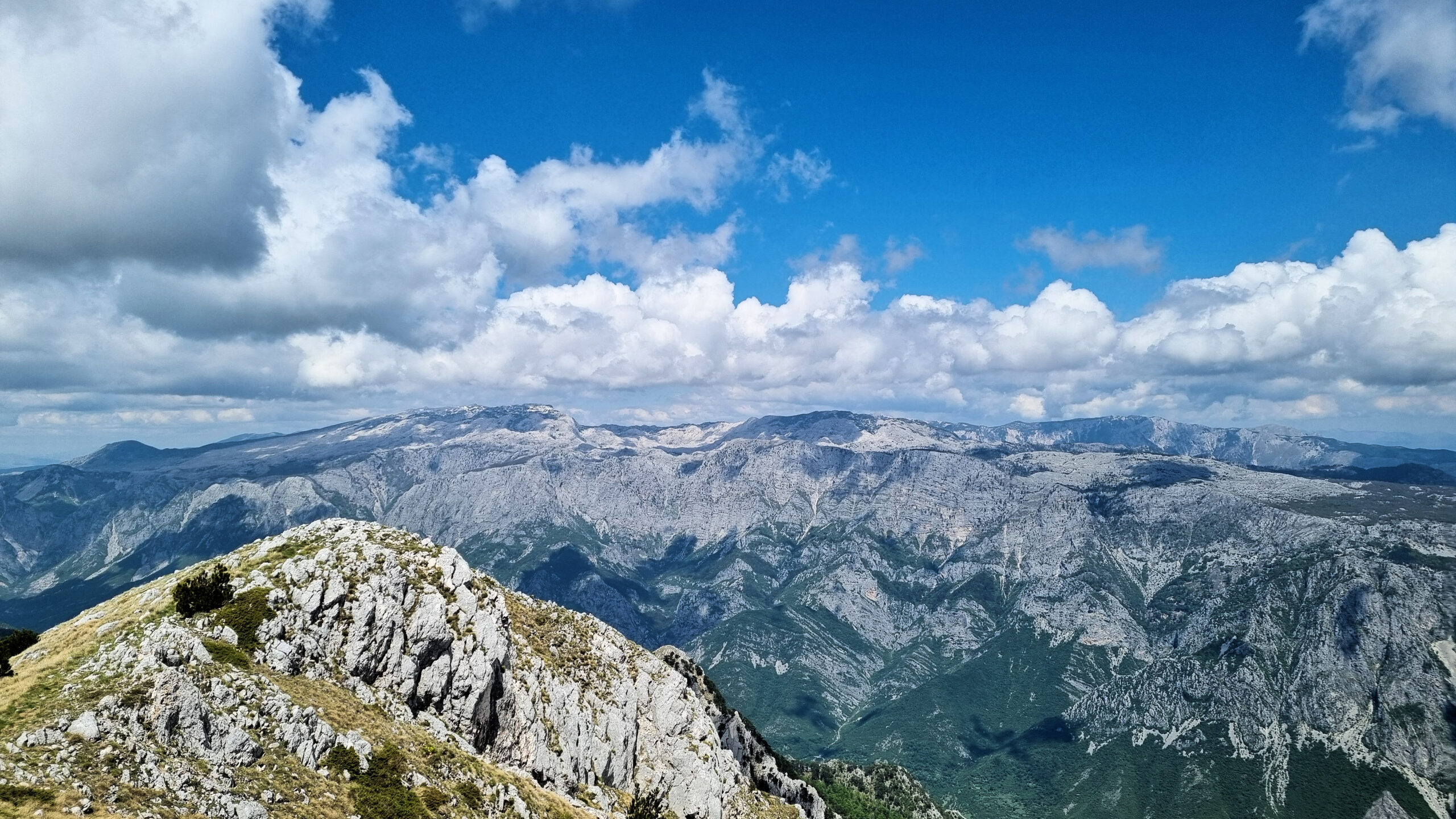 Čabulja has several interesting peaks over 1,600 m: Krupna navala (1,619 m), Ošljar (1,682 m), Mala Vlajina (1,686 m), Medvjed (1,679 m), and its highest peak located on the northern side: Velika Vlajina (1,780 m). All the north peaks descend steeply towards the bottom of the Drežanka river canyon, whose cliffs take your breath away, and if viewed from the valley, they look majestic and impregnable. We heard that this part of Herzegovina is called the “Herzegovinian Colorado Canyon”. Only when we saw it did we understand why. The view from the top is truly something special.