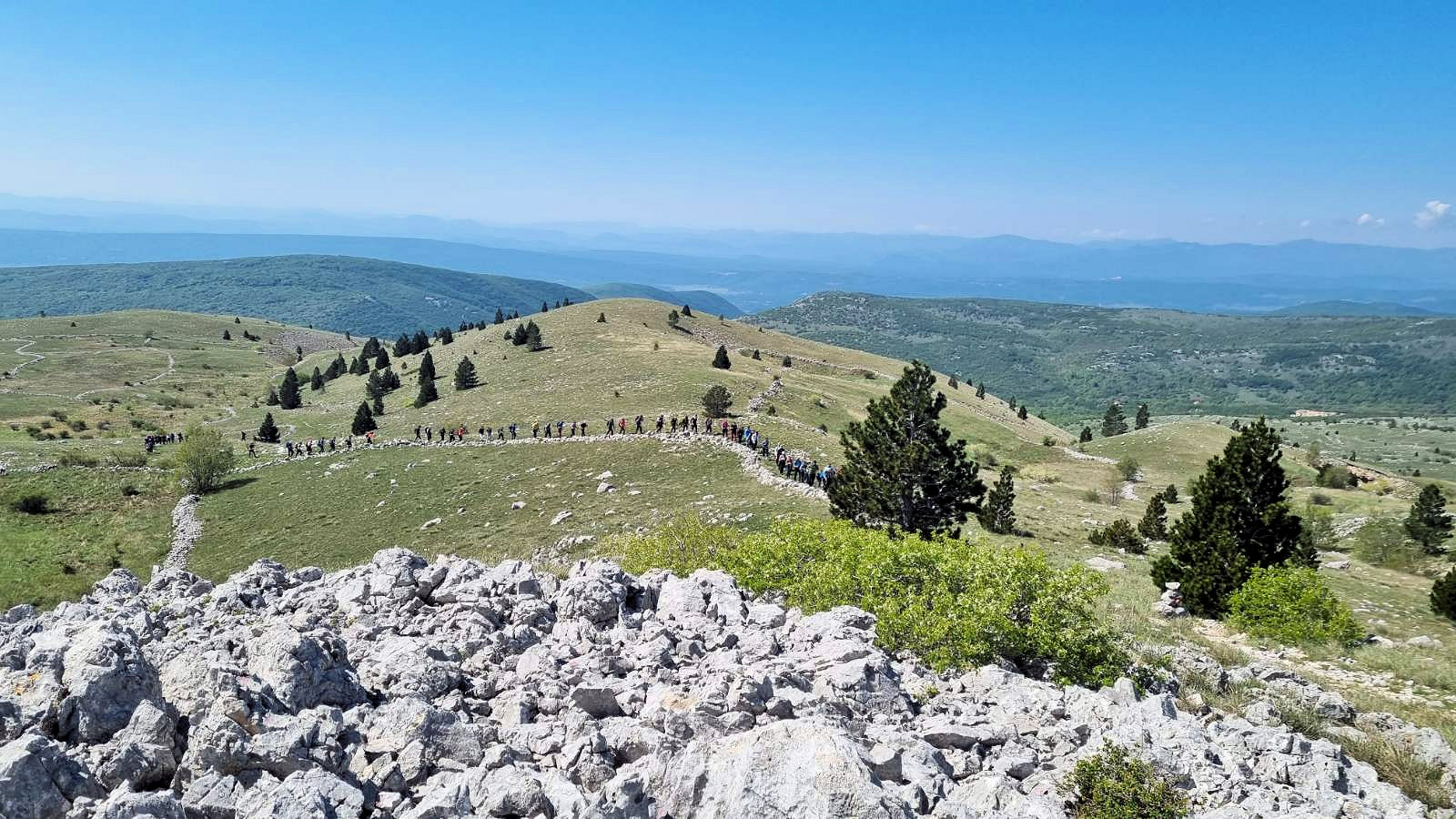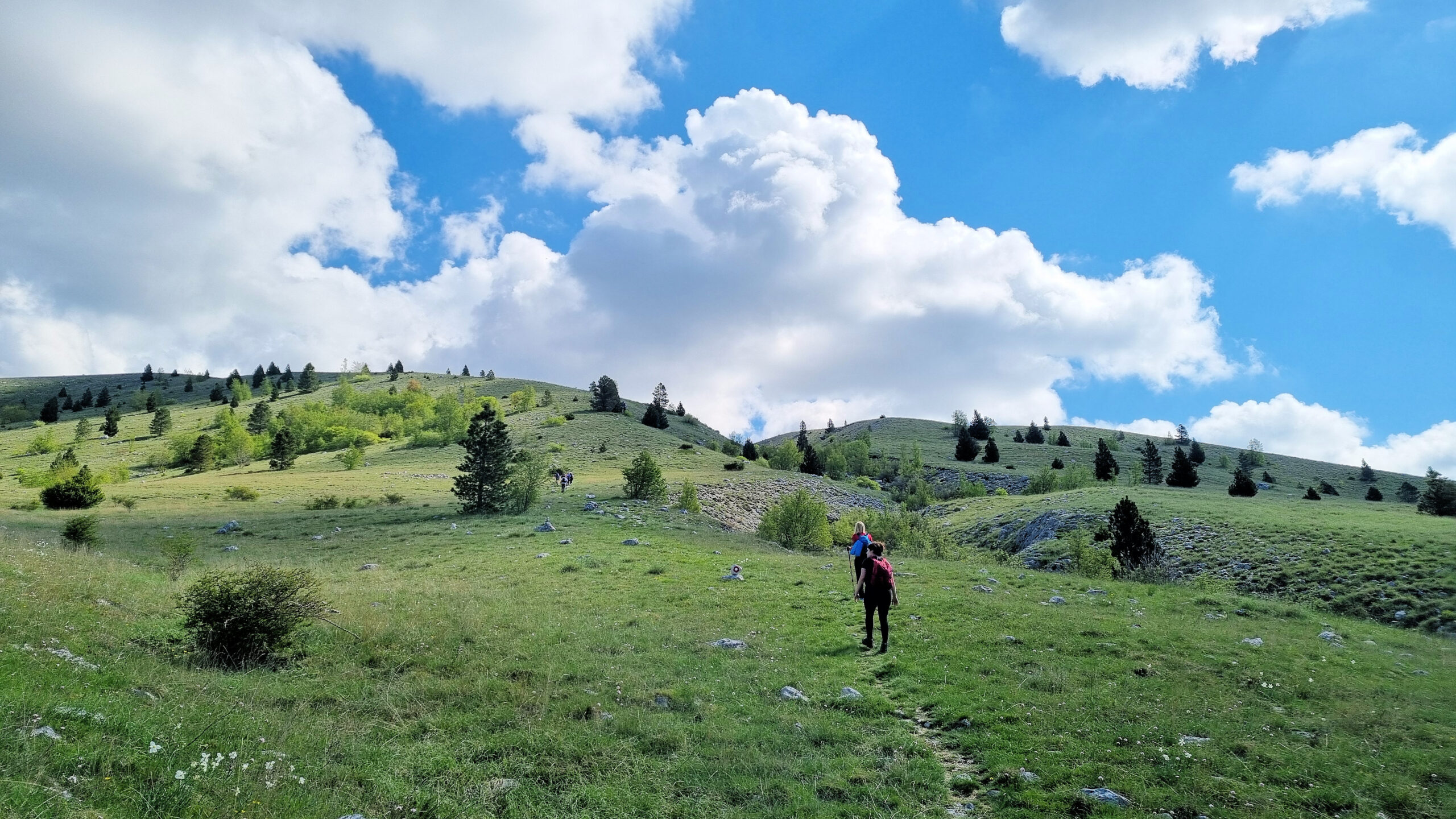 For the first few hundred meters, the hiking trail leads through rare maquis on a grassy rocky area to the beginning of an old-built footpath that first leads along the western slope of the Brinje canyon, then turns left to the northwest along Tanka Kosa, to the cut between the peaks of Vijarak and Veliko Razdolje. Through this notch, the ascent continues along a very well-trodden and marked hiking trail. The road continues along the southern slope of Kršna Bukva, constantly gaining a little altitude. When you get to the Kršna Bukva pass, you can see the top of Velika Vlajina for the first time.